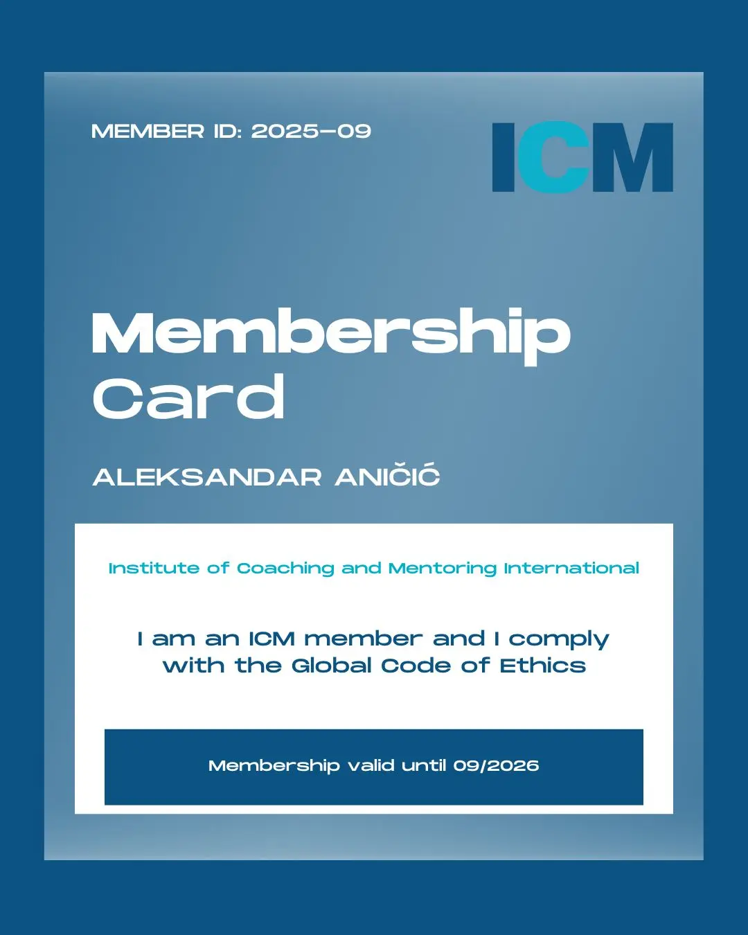 Postao sam član Međunarodnog instituta za coaching i mentorstvo (ICM).